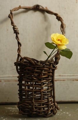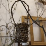 持ち手付きの小さなカゴを、つるを編んで作っていきます。